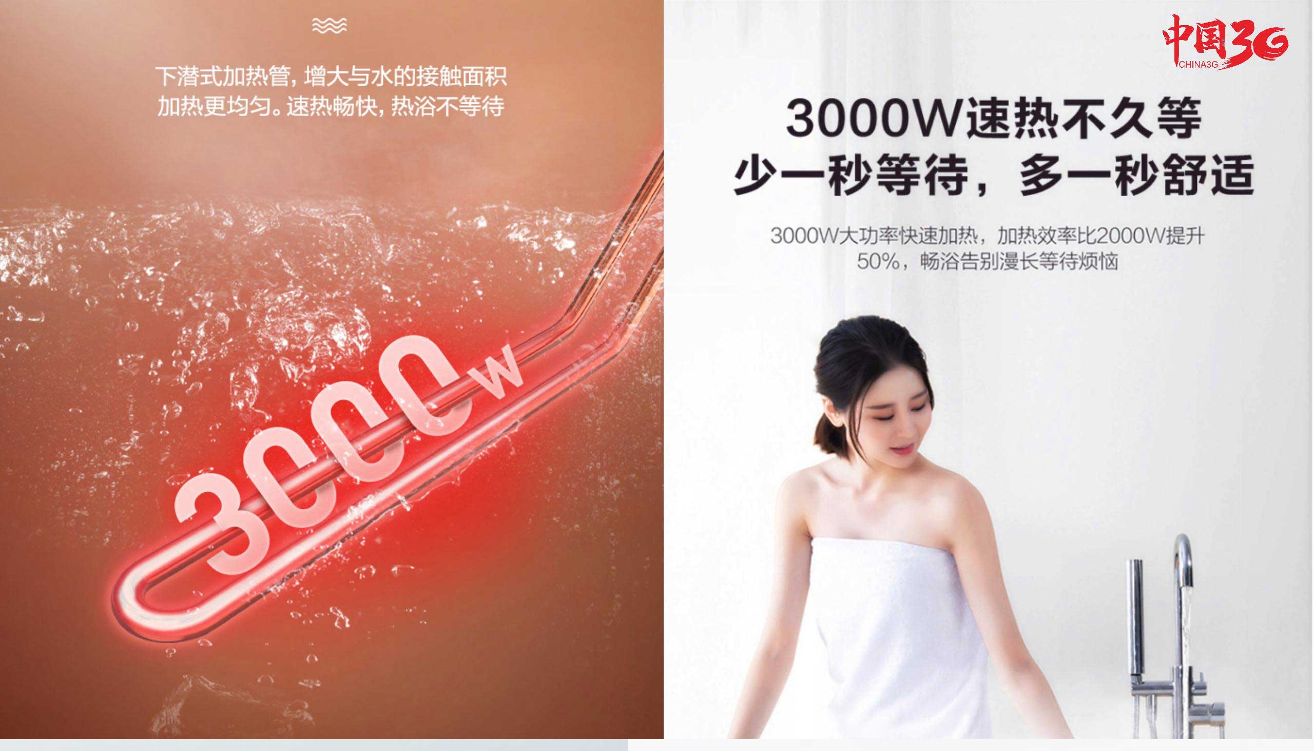 1、3000W大功率速熱,洗浴不等待;