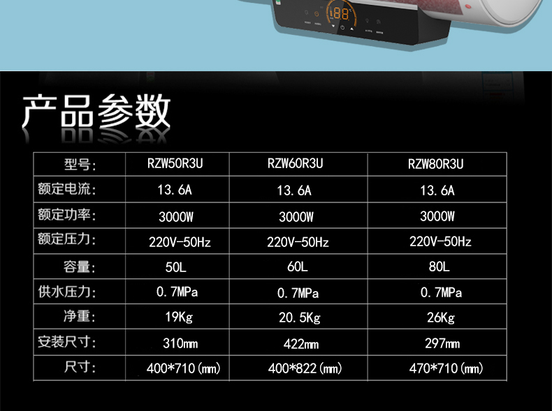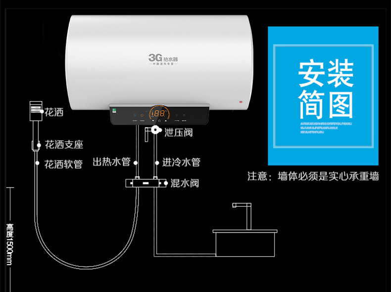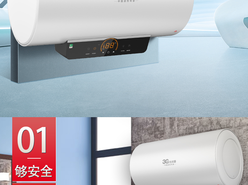 2、3000W儲熱速熱二合一,智能觸屏,武俠遙控;