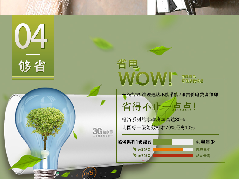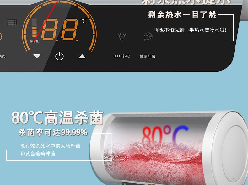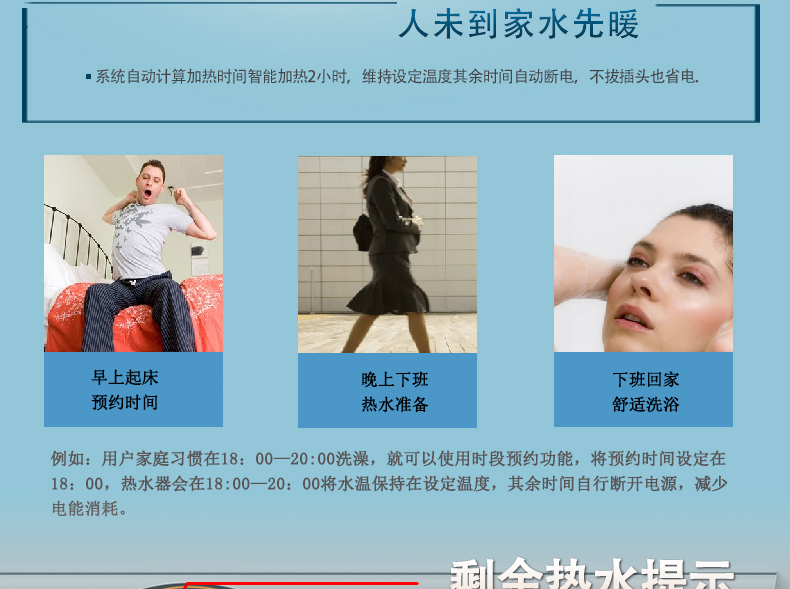 4、時段預(yù)約,智能加熱兩小時,省電30%;
