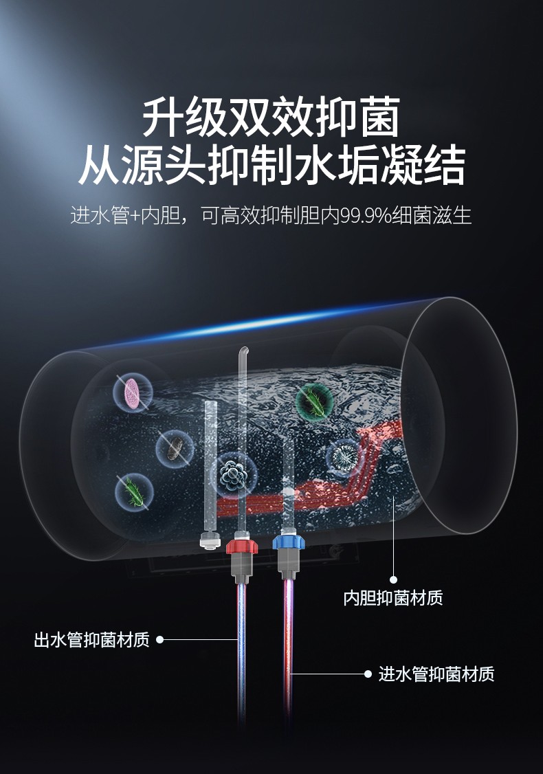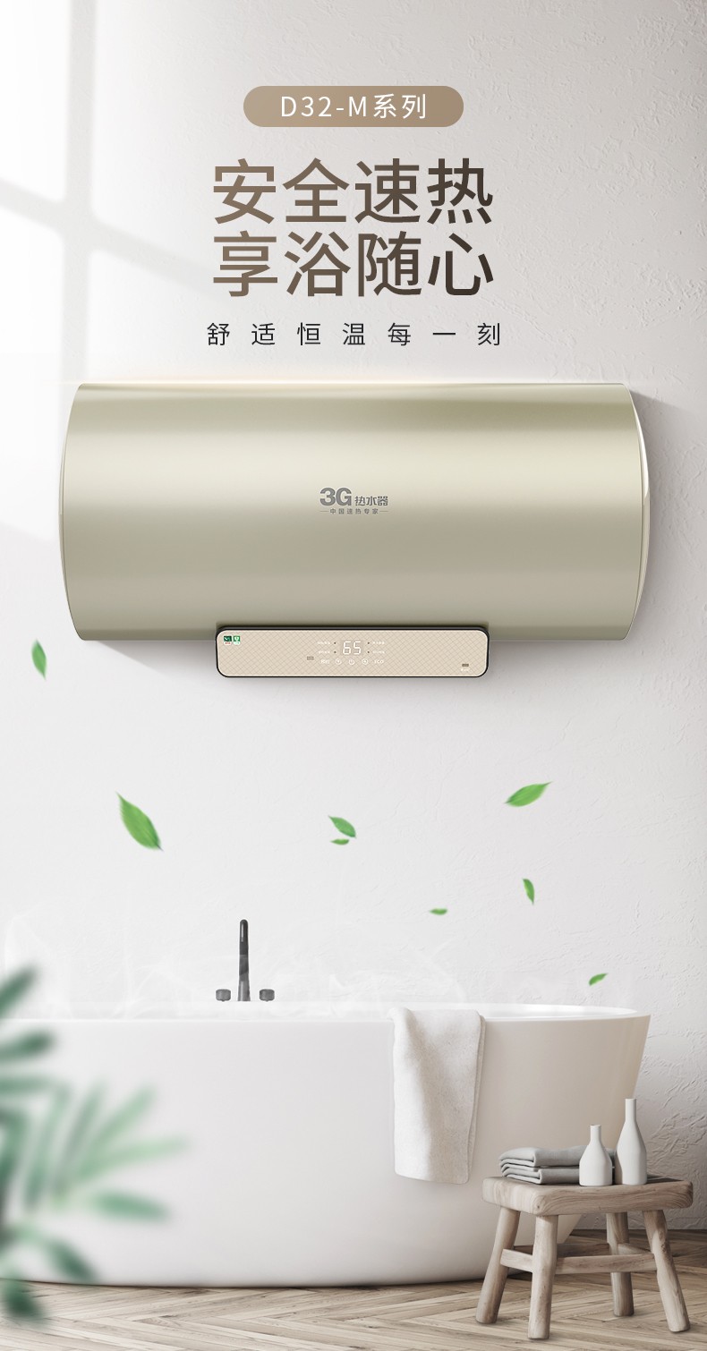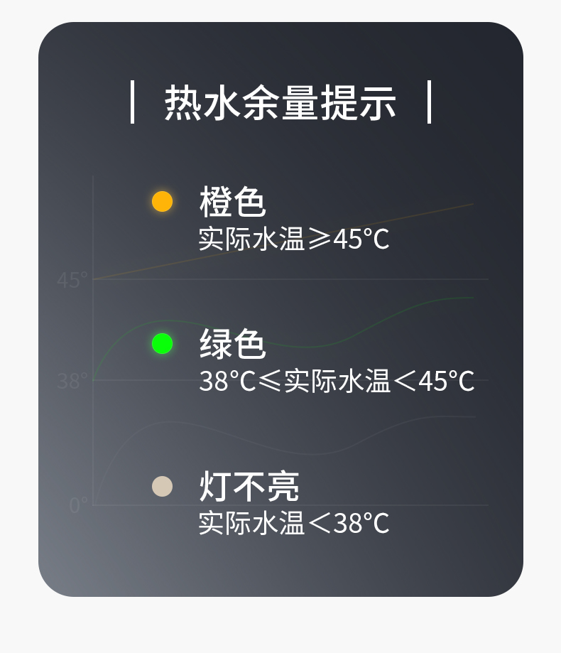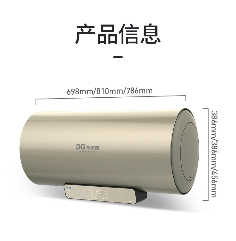2、時(shí)尚摩卡金,智能預(yù)約,一鍵遙控,告別手觸時(shí)代;雙八數(shù)顯,熱水余量提示。