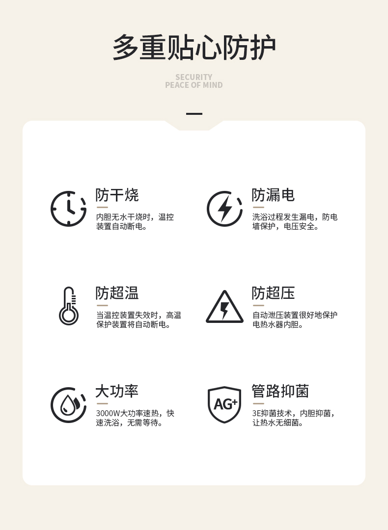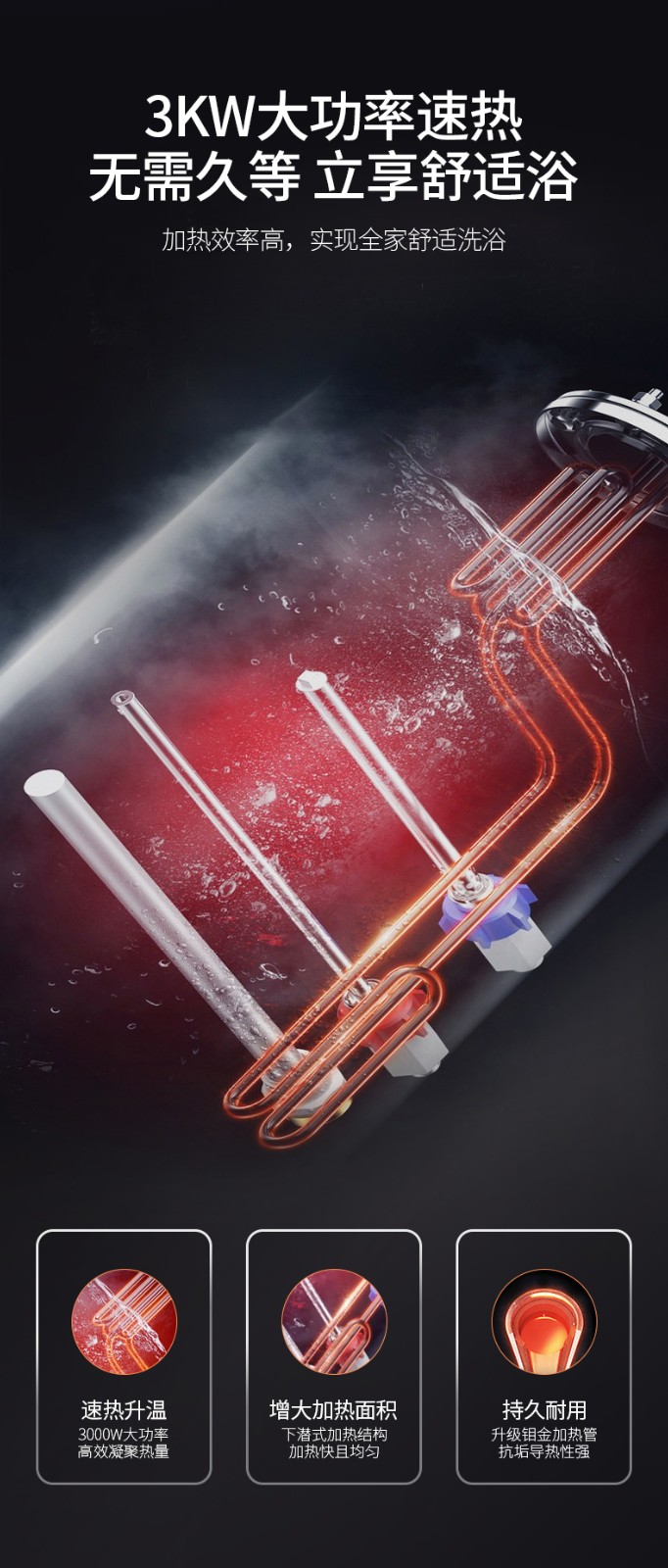 1、3000W大功率,快速洗浴,無(wú)需等待。