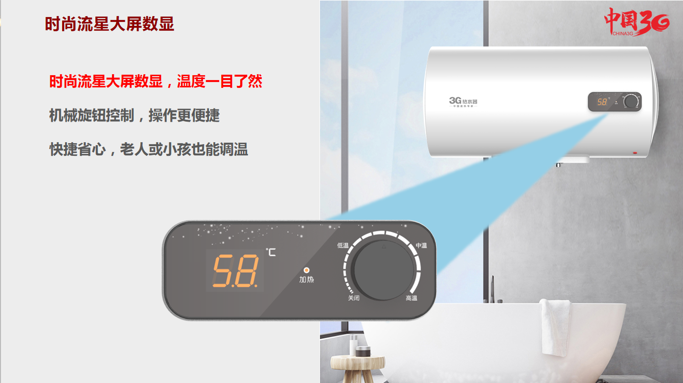 3、流星時(shí)尚數(shù)顯大屏,機(jī)械調(diào)溫,操作更簡(jiǎn)便;