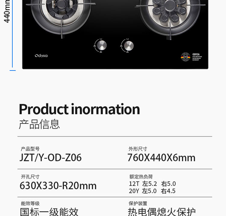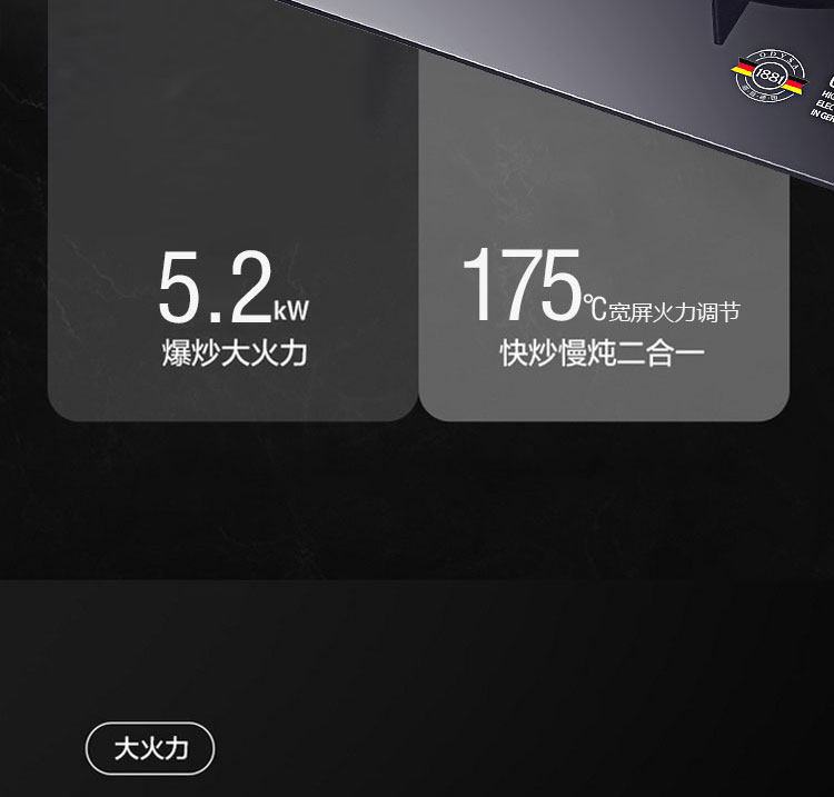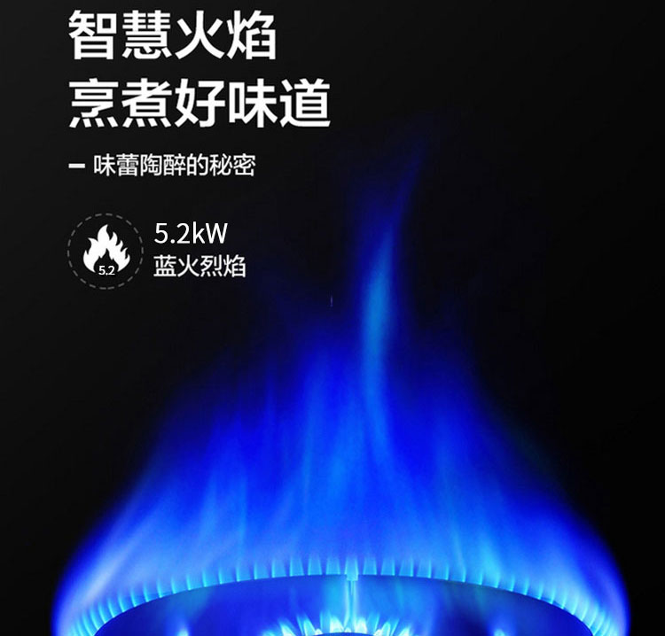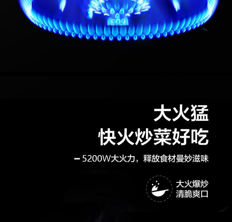 2、5.0KW大火力 :中式爆炒,1級能效、熱效率70%。