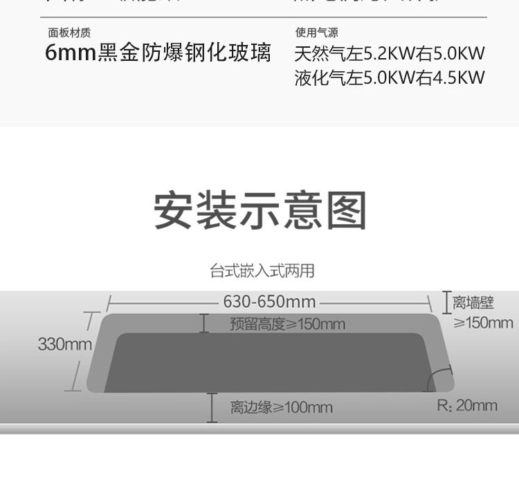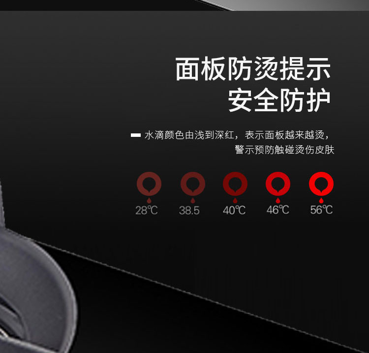 6、760mm黑晶防爆玻璃面板:時尚美觀好清潔。