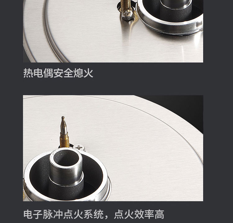 4、熱電偶熄火保護+童鎖+脈沖精準點火:多重保護,確保安全,點火無故障。