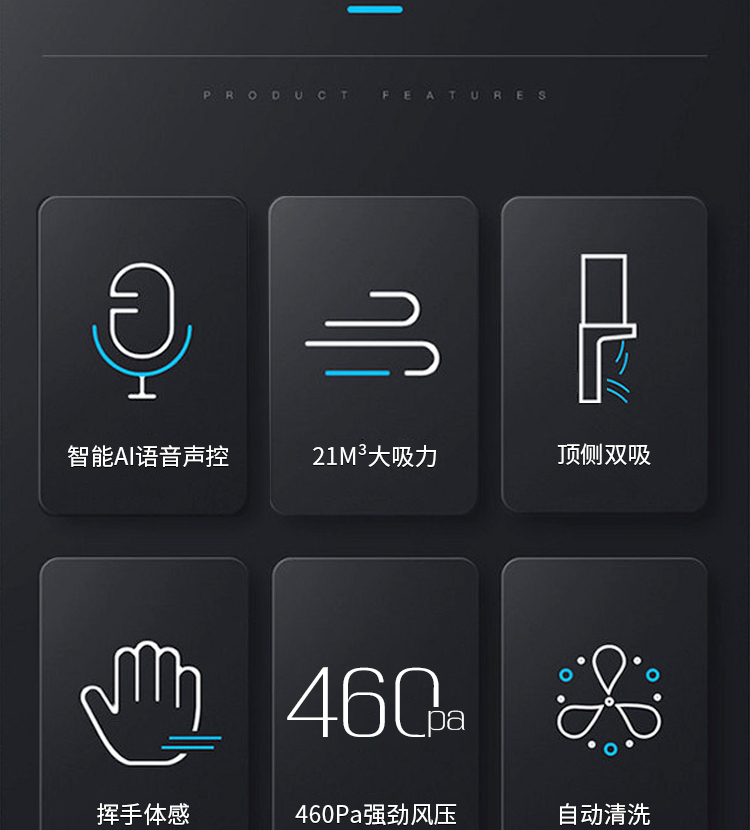2、低空潛吸、頂側(cè)雙吸:吸力強(qiáng)勁、雙風(fēng)道設(shè)計(jì)。