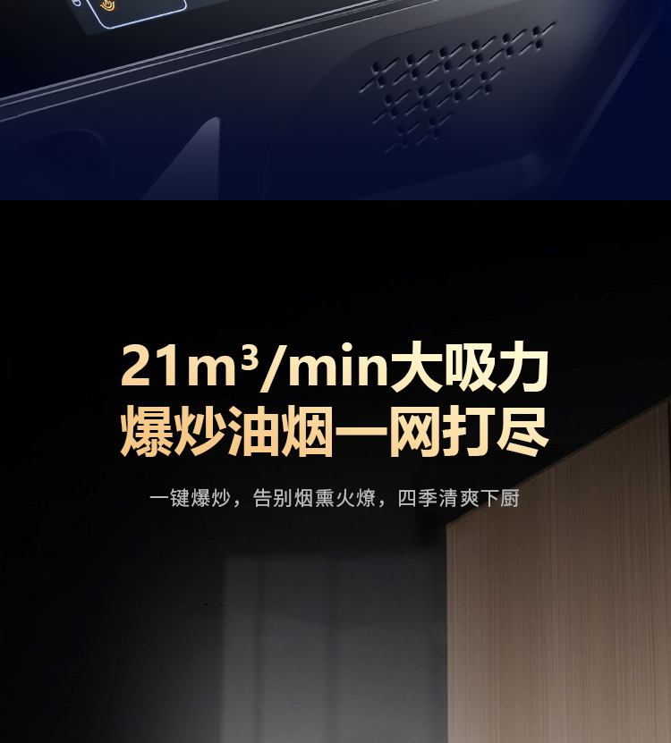1、20m3/min強(qiáng)勁大吸力:廚房油煙秒凈,不跑煙。