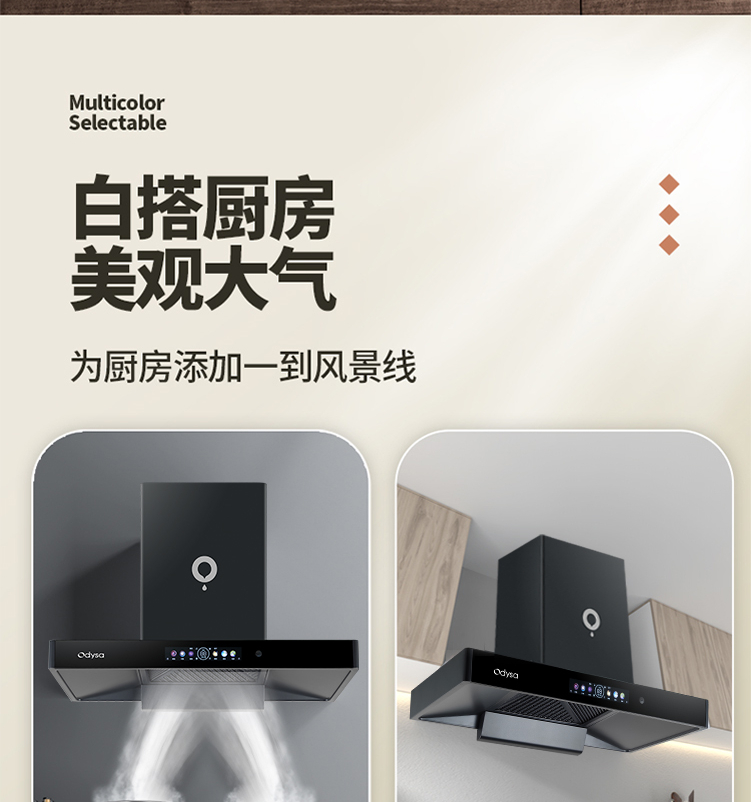 1、19m3/min強勁大吸力:油煙秒凈,深腔隴吸不跑煙.