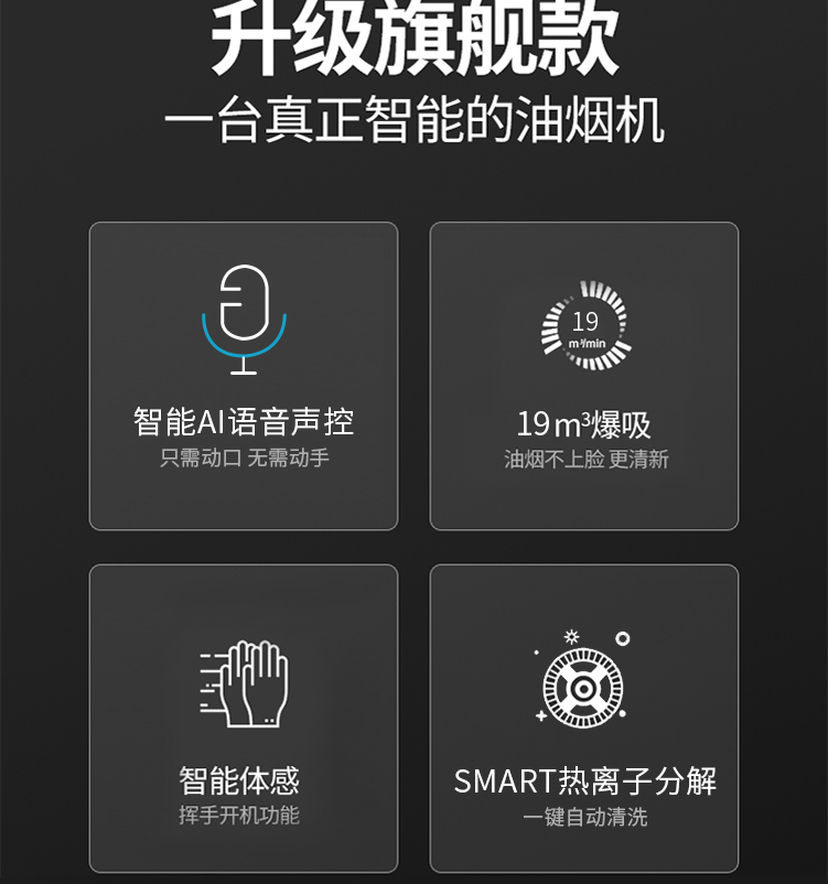 2、智能語音控制:煙機應(yīng)生而動,告別油煙。