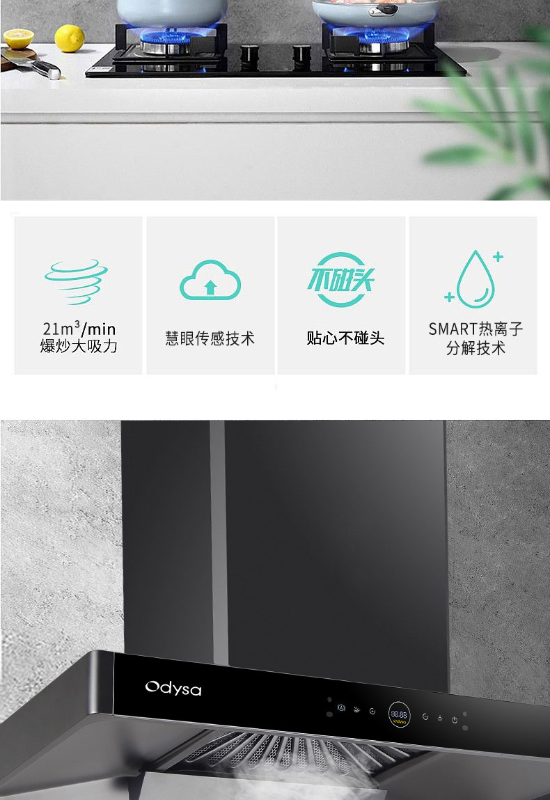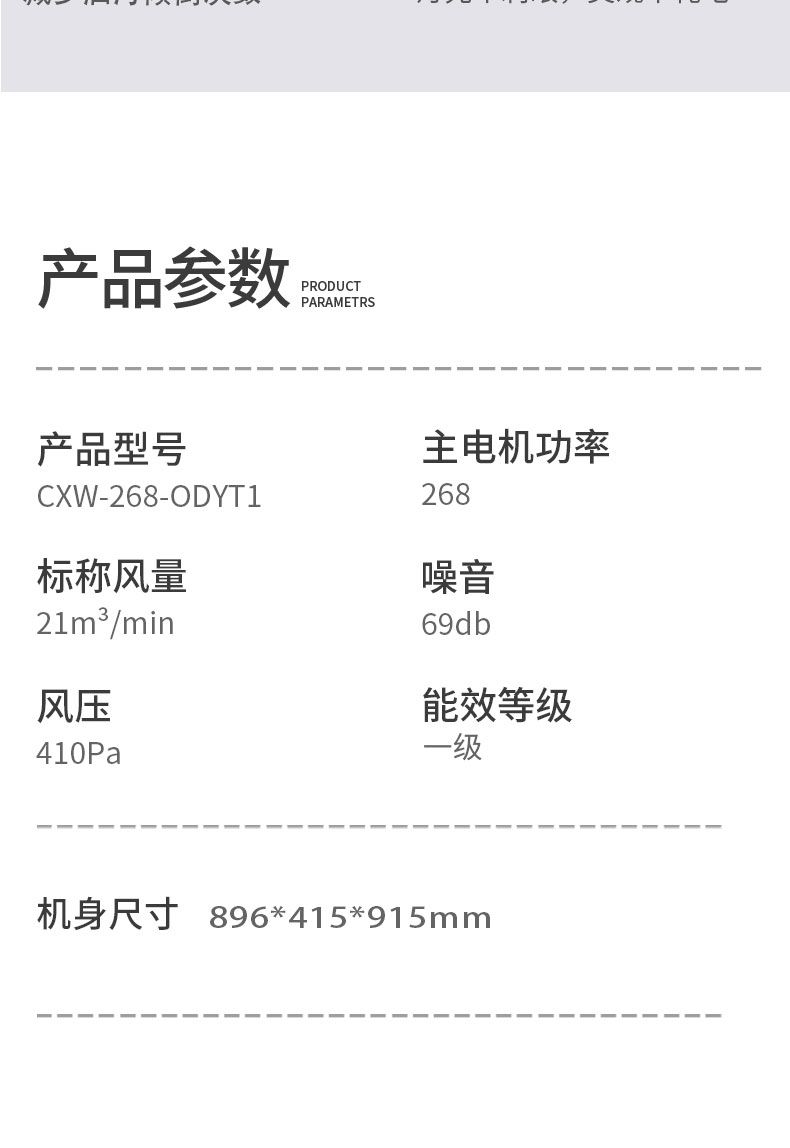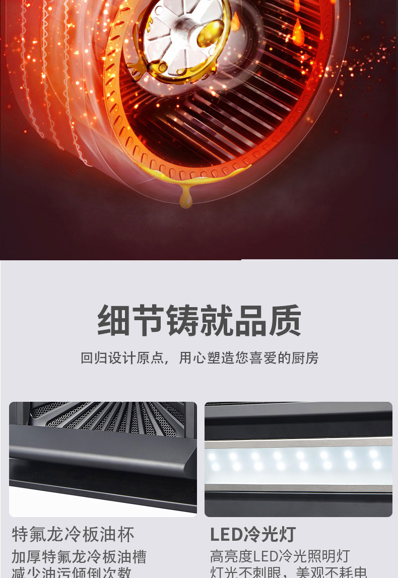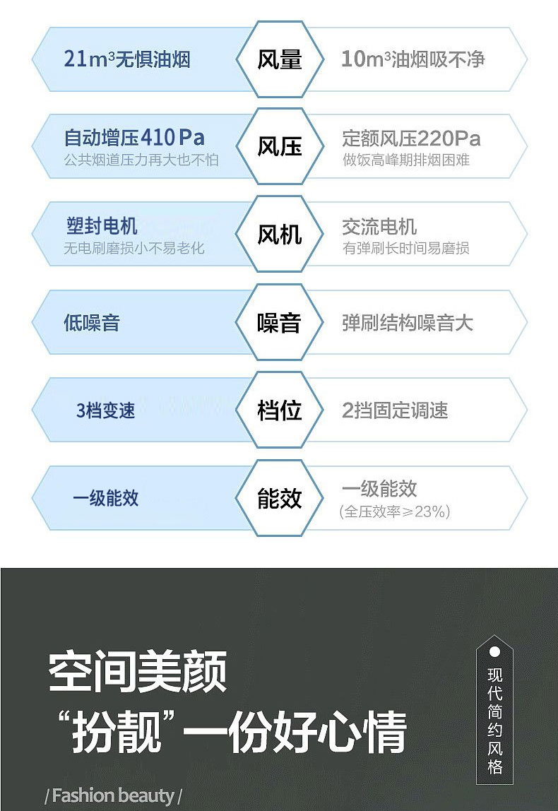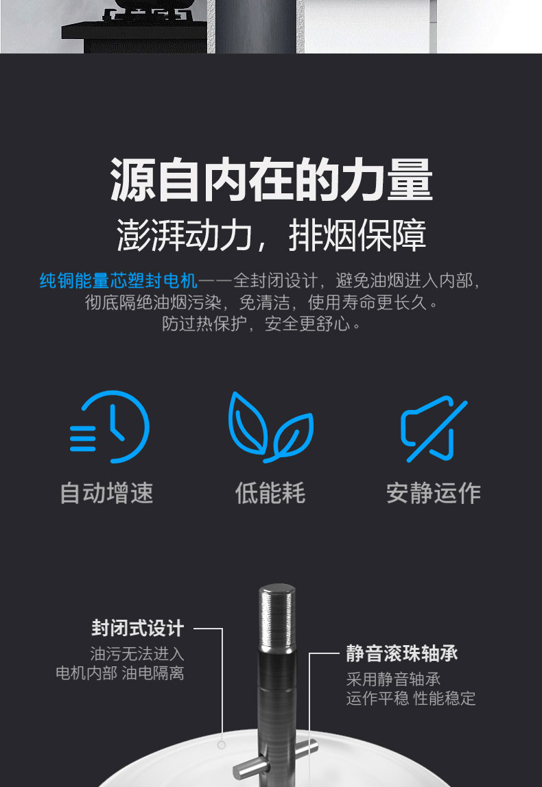 1、19m3/min強(qiáng)勁大吸力:油煙秒凈,深腔隴吸不跑煙.