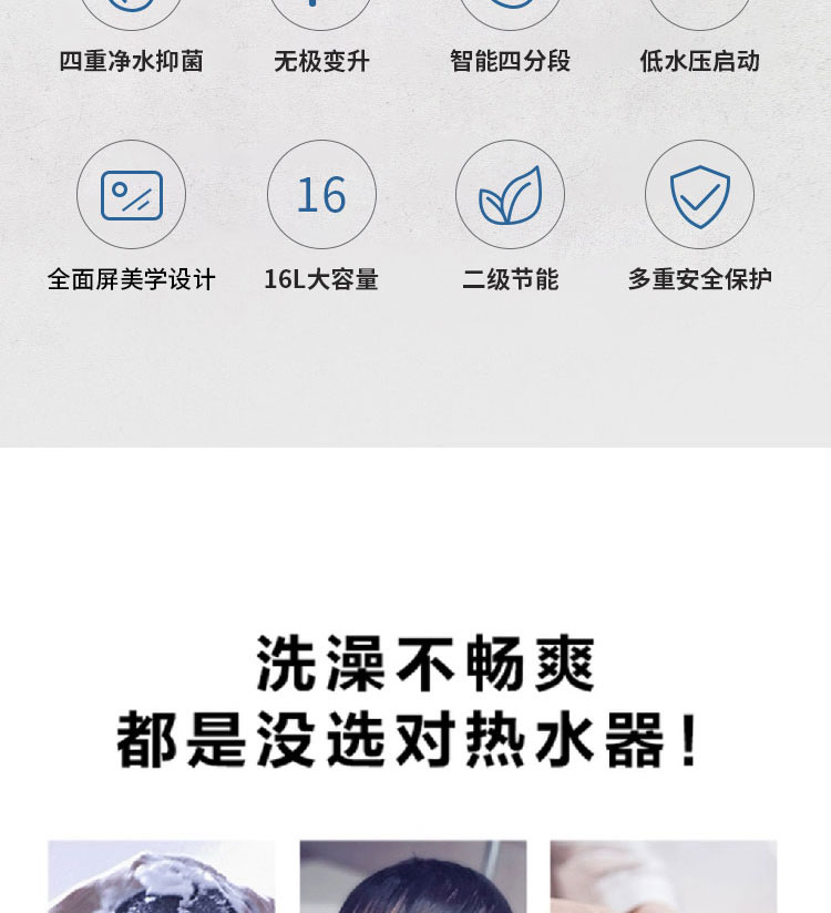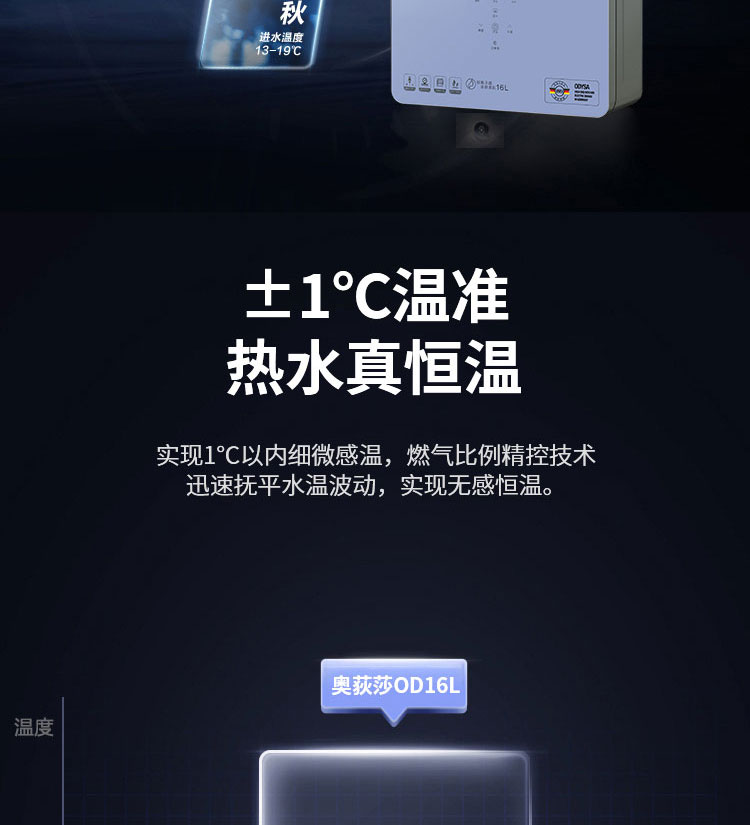 2、AI智能恒溫技術(shù),±1℃ 精控恒溫:舒適熱水體驗(yàn)、避免忽冷忽熱。