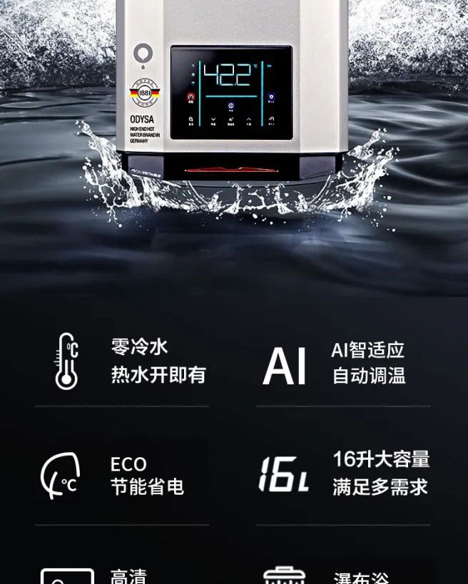 1、16L零冷水:花灑一開 熱水即來、 0等待 0浪費。