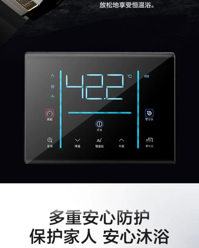 4、AI智能恒溫技術(shù),±1℃精準(zhǔn)恒溫:舒適熱水體驗,避免水溫忽冷忽熱。