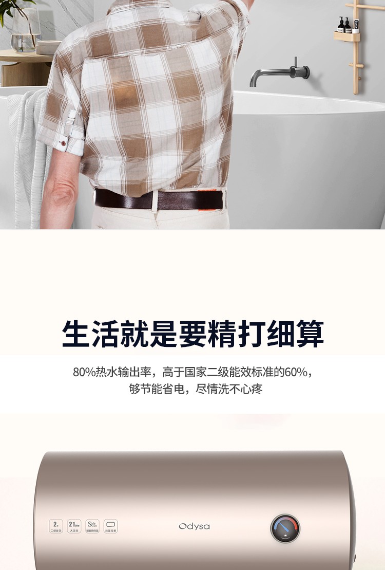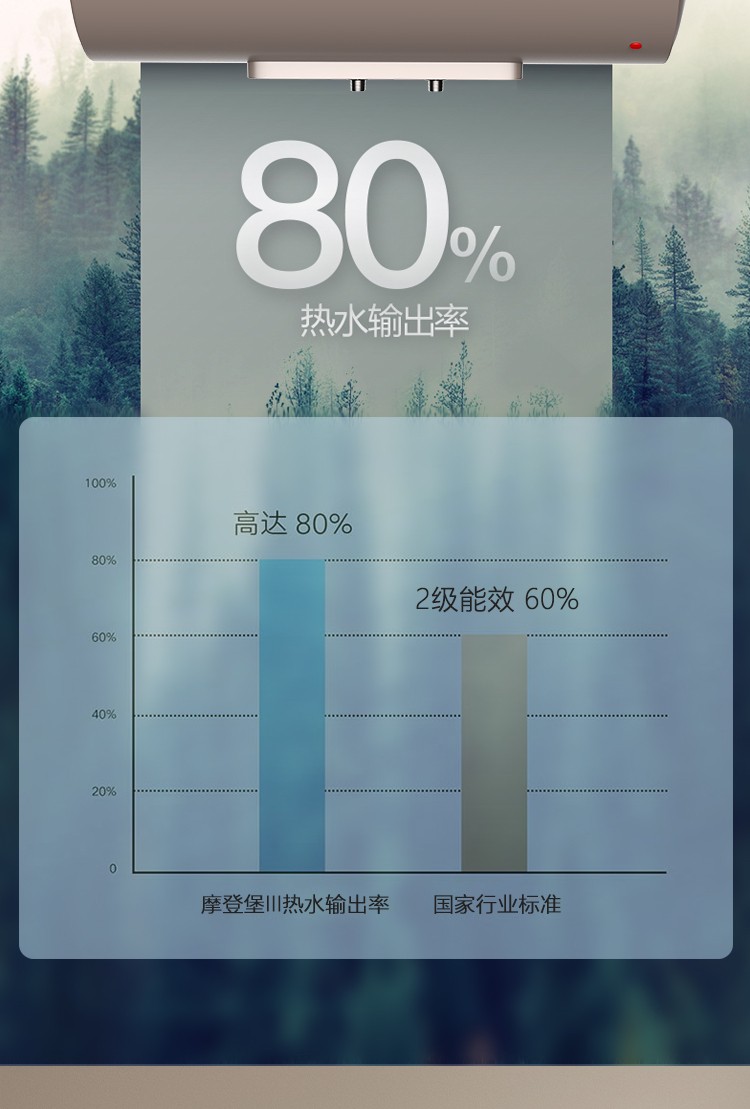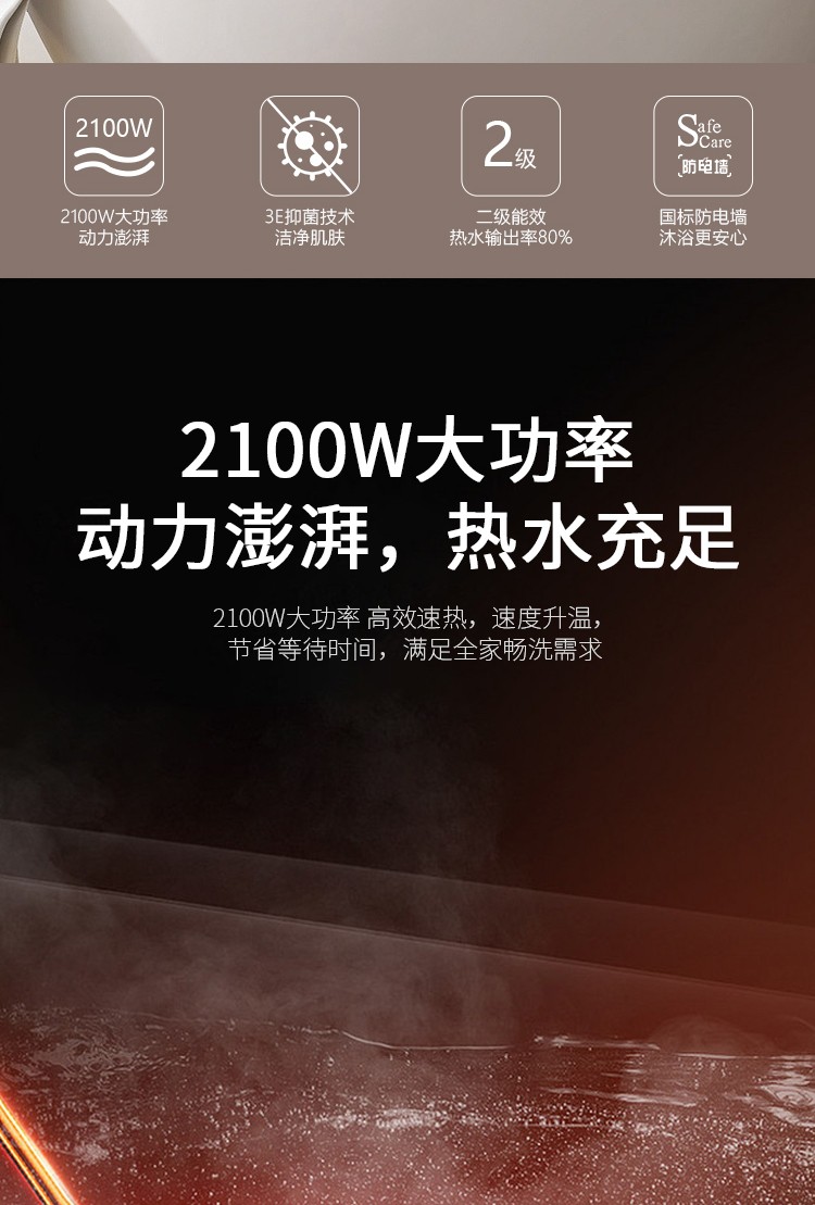 2、2100W、2級(jí)能效:熱水輸出率高達(dá)80%、熱水更多。