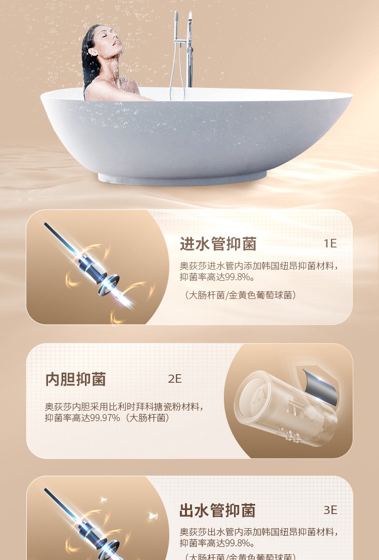 4、雙效抑菌健康洗:進(jìn)出水管+內(nèi)膽抑菌,抑菌率高達(dá)99.97%。