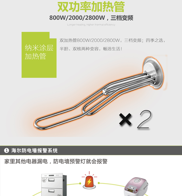 2、雙膽雙鎂棒雙發(fā)熱管:雙膽速熱、洗浴不久等。