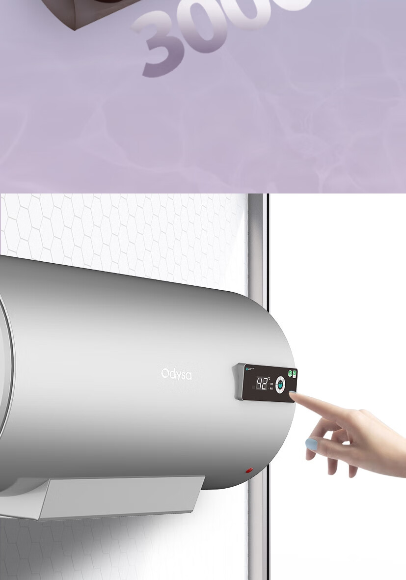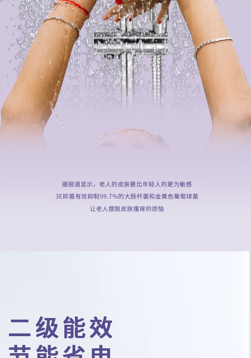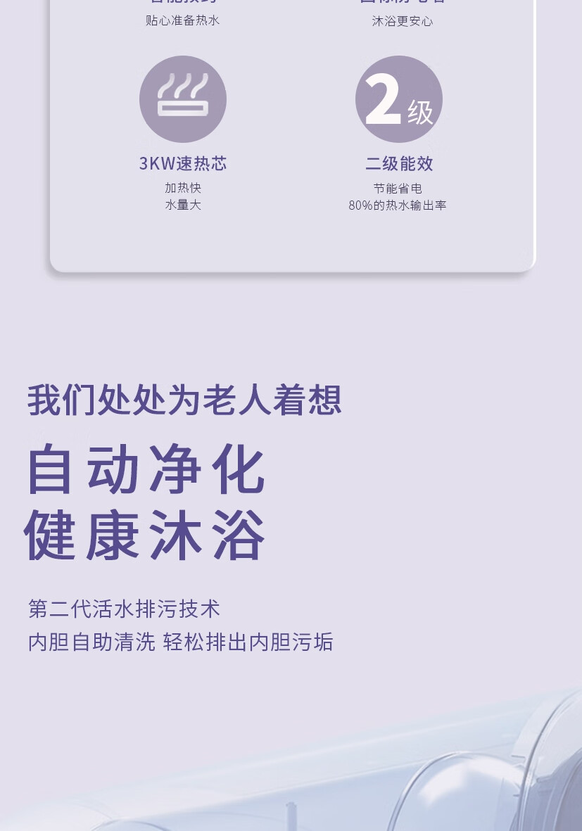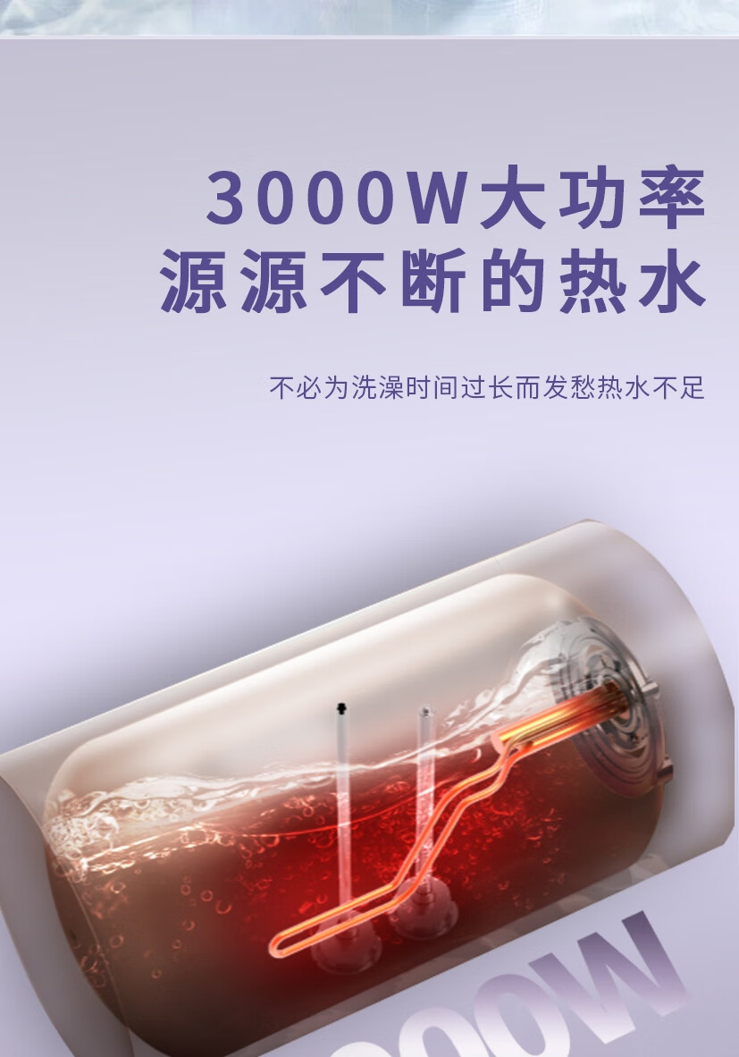 2、3000W雙管分層速熱:快速升溫、4倍熱水、暢洗無憂。