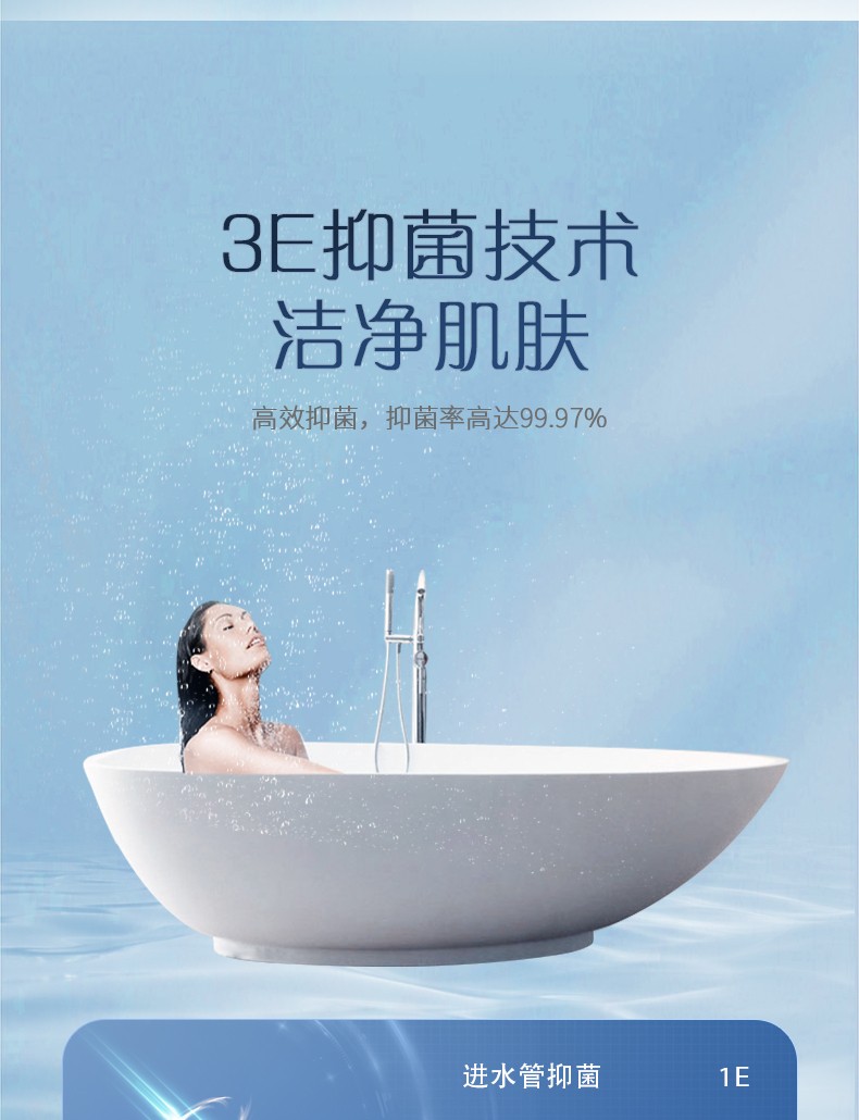 2、雙效抑菌健康洗:進(jìn)出水管+內(nèi)膽雙效抑菌、抑菌率99.97%。